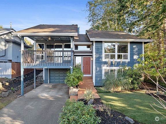 Excellent opportunity sitting proudly above Titlow Beach Park in Tacoma's West End. Almost 2000 square ft w/ three bedrooms, 2.5 bathrms & a sizable rec room. Significant updates w/ stylish choices such as travertine backsplash, granite counters, luxury sapele wood cabinets & newer appliances. Fantastic outdoor spaces w/ a huge deck, turfed play area & a pleasantly terraced backyard. Enjoy beautiful sunset views    & partial Sound/Mountain views from the front deck off the spacious main living rm. Walking distance to Titlow Beach, walking trails & a super fun spray park. Plenty of room for toys & storage w/ an attached garage, a covered carport & extra driveway parking Close to 6th Ave, Highway 16, desirable schools & convenient shopping.