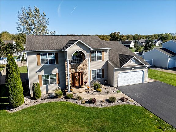 Welcome to 8336 Moyer Carriage in The Pastures, proudly offered by the original owners. This beautifully maintained home features over 3,000 sq ft of living space, 4 bedrooms (with a possible 5th), professional landscaping, stamped concrete walkways, and a spacious fenced-in backyard with a large deck ideal for entertaining. Built in 2003 with 16" on-center construction, this home showcases quality craftsmanship and thoughtful upgrades throughout. Step into the impressive two-story foyer leading to a bright kitchen with granite countertops, newer stainless-steel appliances, and a breakfast area that opens to the family room with a cozy gas fireplace. The first floor also includes a formal dining room, living room, half bath, and an office that can serve as a fifth bedroom. Upstairs, four oversized bedrooms include a spacious primary suite with vaulted ceilings, a whirlpool tub, and a separate shower. Additional highlights include hardwood floors, plush carpeting, a stone-accented front entry, an extra-wide driveway, a two-car garage, a whole-house generator, and an unfinished basement offering future potential. Public records indicate 2,742 sq ft; the home was built larger, with builder specifications showing 3,004 sq ft. Open House: Thursday, November 20th, 4:30 PM to 6 PM.