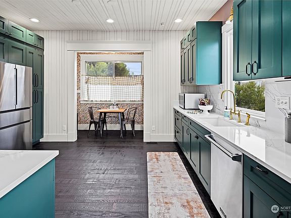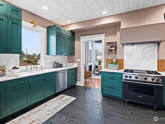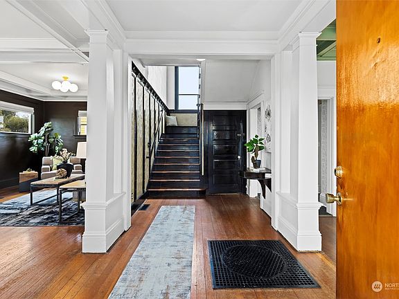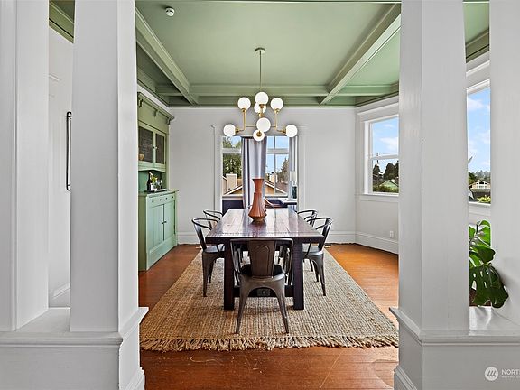 Large, fenced lot on a quiet dead end street, blocks to two light rail stations. Large rooms w/high 9.5 ft ceilings, with bright sunlight & beautiful views of the Cascades & Mt. Rainer. Architectural coffers on first floor, grand entry w/oversized staircase. $150k of recent upgrades/renovations, including sewer line, permitted new wiring and panel, new plumbing, extensive replastering, chimney tucked/capped. Fully remodeled kitchen with new cabinets, flooring, & high-end appliances (Viking gas range with oversized range hood). Remodeled baths. Large unfinished basement with room for storage/shop. Large attic is plumbed/wired for convenient upgrades. This is a modernized 115 year old house with solid bones and character with room to grow.