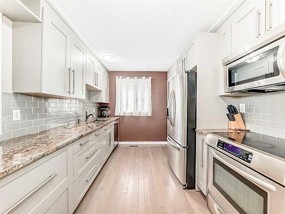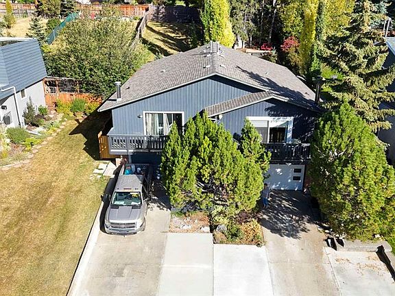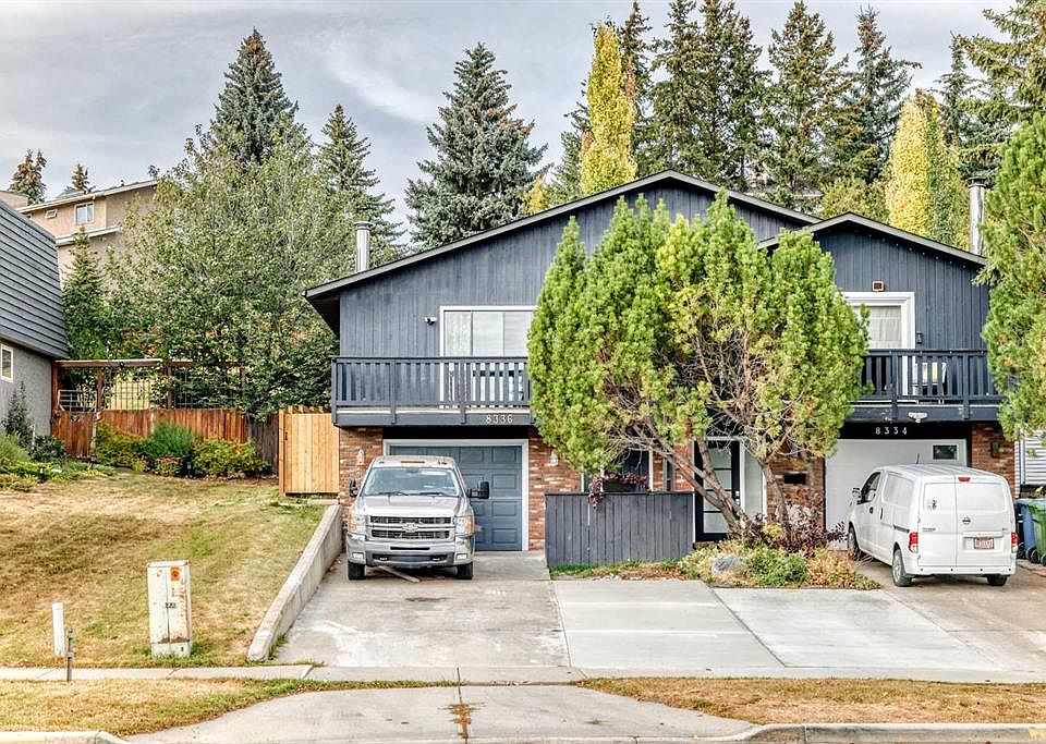 Excellent 3 bedroom up 1/2 duplex with single attached garage, terrific south views of the river valley and C.O.P., situated on an oversized 184 ft deep lot, just steps away from the amazing Silvercreek and Bowmont Park pathway system. This home has been in the family since 1982 and has been lovingly updated over the years, plus features a side entrance to the basement, giving you some options in the future. As you pull up to the property you will notice it's long double wide driveway, which can accommodate 3 cars, plus additional parking in the oversized single garage. As you enter the main living area you are greeted with hardwood flooring thru-out the entire mainfloor, freshly painted thru-out, plus an updated kitchen that features soft close shaker style cabinets, stainless steel appliances and granite counter tops. The lovely well-lit front living room features a newer cozy electric fireplace with tile surround and a custom mantle, and which leads out to the large 20' wide south facing deck that features dura decking and amazing views of the river valley and Canada Olympic park. All three bedrooms up are quite large, perfect for roommates or growing families, and the updated main floor bath with tile flooring is perfect to just move in and enjoy. The pantry storage room up is also equipped with laundry rough in's, in case you are wanting to keep everything all on the mainfloor. The finished basement features a side entrance, roughed in for a dishwasher and additional plumbing, and has direct access to the single garage. The huge sun drenched backyard is perfect for any green thumb / garden enthusiast and kids/pets. Additional upgrades the family has done over the years include; new roof 1 year ago, painted exterior 1 year ago, newer furnace and hot water tank plus all new interior doors and trim. Excellent starter home close to pathways, all levels of schools, the River, Crowfoot Shopping plus great access West to the mountains and only 15 mins to the airport via the Stoney Trail Ring Road. Call your favorite Realtor to view!