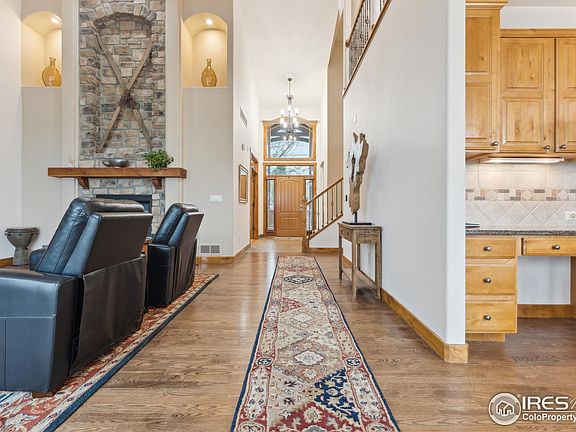 Stunning home in the highly desirable Highland Meadows community! This beautifully maintained 5-bedroom, 5-bathroom residence offers over 5,400 square feet of living space and backs to expansive covenant-controlled farmland, providing peace, privacy, and sweeping views. Sunrises are amazing and you can see for miles to the East. The main floor features a spacious master suite is situated well off the main living area for ultimate privacy. Elegant Alder trim and cabinetry, along with hardwood flooring throughout. Enjoy cozy evenings by one of the two double-sided fireplaces or get productive in the dedicated main-level study/office. The finished basement provides ample space for entertaining, guests, or hobbies, as well as 500 square feet of storage. Upstairs includes a convenient Jack and Jill bathroom between the two bedrooms. The large backyard is a gardener's paradise, with plenty of room and sun. This home is located in the sought-after Poudre School District with easy access to I-25, shopping, dining, and more-this home truly has it all! Schedule a visit today!