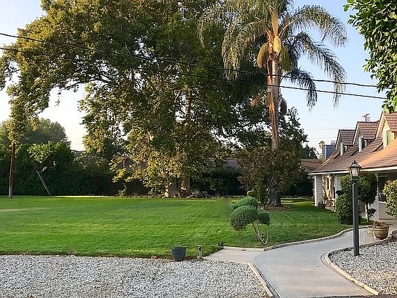 Just shy of one full acre. Main house is approximately 3842 square feet with 5 bedrooms + 4.5 baths. 3 fireplaces. 2 Kitchens with 2 subzeros & double ovens. Oversized family room/game room with vaulted ceilings and custom builtins. Plantation shutters, leaded beveled glass. 2 staircases. Walk in closets. Jack & Jill bath upstairs. Separate self contained guest house with 1 bedroom, living room and full bath, central a/c and kitchen. Great space - like a 2nd house! Private park -like setting with North/South lighted Tennis Court, pool, 4 car garage and ample RV parking. Electric gate.