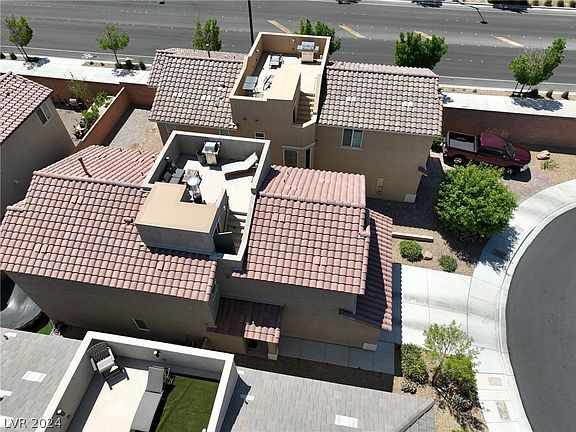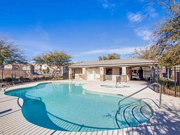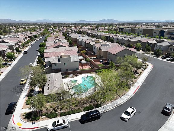 Welcome to your new 3 bedroom, 3 bath plus Roof Top Deck in the heart of the coveted community at Sky Pointe. This home is nestled into a quiet cul-de-sac, steps away from the community pool and spa. The main floor is an open concept with an oversized kitchen with breakfast bar seating, granite countertops, stainless steel appliances and walk in pantry. Venture upstairs to find a small versatile loft. Primary bedroom has an ensuite with dual sinks and two walk-in closets. Then continue upstairs to the highlight of this property, the roof top deck! Amazing views of the surrounding mountains and lights of our fabulous city! Conveniently located, this home offers easy access to schools, shopping, parks & more! VA eligible buyer may assume at 2.75%