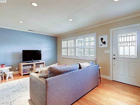 This beautiful single story ranch style home is located in the sought after The Village community. This 1,116 square foot home has wide plank hardwood floors and plantation shutters. Ideal starter home or those looking to downsize. The kitchen has granite slab counters with stone tile backsplash, warm off-white upgraded cabinetry, stainless steel appliances, including a brand new dishwasher and a pantry. New light fixtures in kitchen and expanded hallway leads to the three bedrooms. All bedrooms have upgraded closet doors and closet systems. Crown moulding throughout with modern hardware gives it a touch of modern meets old world charm. Fresh exterior paint, and a covered patio that welcomes you to a backyard with organic soil in the garden beds. Enjoy this home that is close to shopping, restaurants, BART and highways.