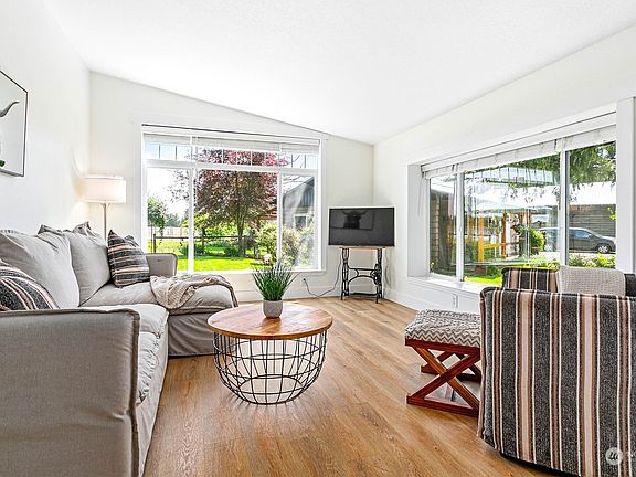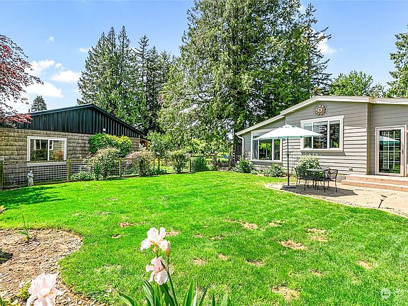 Outstanding opportunity for multi-generational living at this delightful sought after Bob Hall Road location...2,070 sq ft 3 bedroom/2 bathroom main house + second stand alone building with 750 sq ft guest quarters. The main house features a light & bright open concept kitchen/living/dining design with updated quartz counters & LVP flooring. The versatile outbuilding has ADU potential with 1 bedroom/1 bathroom, full kitchen, living room + 2 car attached garage. Don't miss the incredible sunrise and sunsets or the covered outdoor relaxing/entertaining area. This 1.2 acre mountain view estate is ideal for the buyer looking for privacy or for loads of space for boat/RV parking. Bonus: Lynden School District + Xfinity is available here!