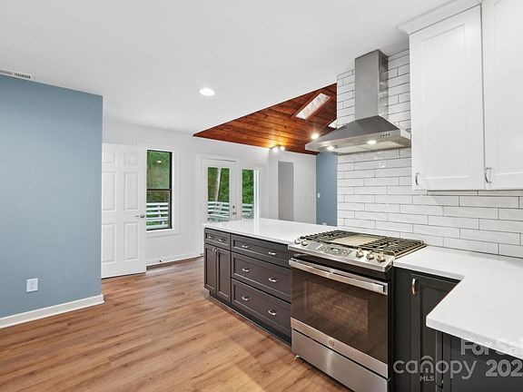 Beautifully renovated home nestled on a private, tree-lined lot just over half an acre! This move-in-ready 4 bedroom gem offers the perfect blend of tranquility and convenience—located minutes from Uptown, SouthPark and Matthews. Step inside to discover stunning luxury vinyl plank flooring, sleek quartz countertops, stainless steel appliances, and stylish recessed lighting. The vaulted ceilings and skylights flood the space with natural light, creating an open and airy feel throughout. Enjoy indoor-outdoor living on the expansive deck—perfect for entertaining or relaxing in total privacy. A rare find in a prime location! Updates include kitchen, floors, bathrooms and new roof in 2025. A Must see!!!