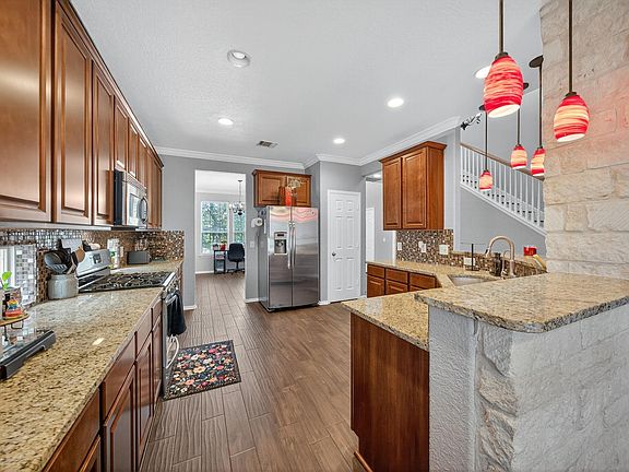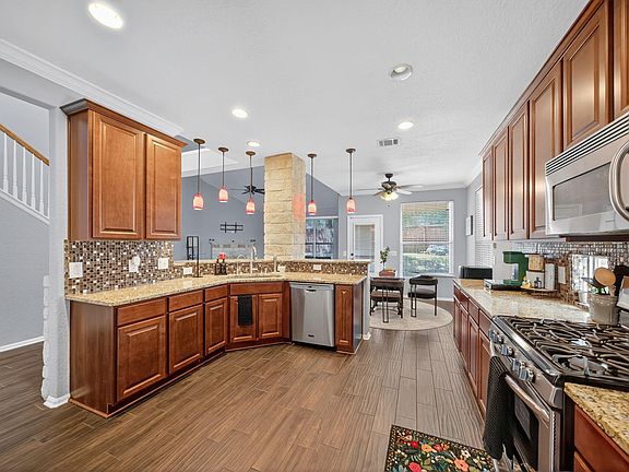 Well maintained stately home in a great central location. Near UTSA, The Rim, La Cantera Mall, Fiesta Texas, Medical Center and restaurants. This 4 bedroom 2 1/2 bath home is situated in a cul-de-sac. Has vaulted ceilings in the living room with a fireplace and lots of windows. The large kitchen features granite counter tops, a breakfast nook and pantry. The owners retreat has a large bedroom and bathroom with dual vanities, separate garden tub and shower and spacious walk in closet. Upstairs you will find the 3 other bedrooms, game/loft area and a private bathroom. Outside in the yard is a covered patio and mature trees.