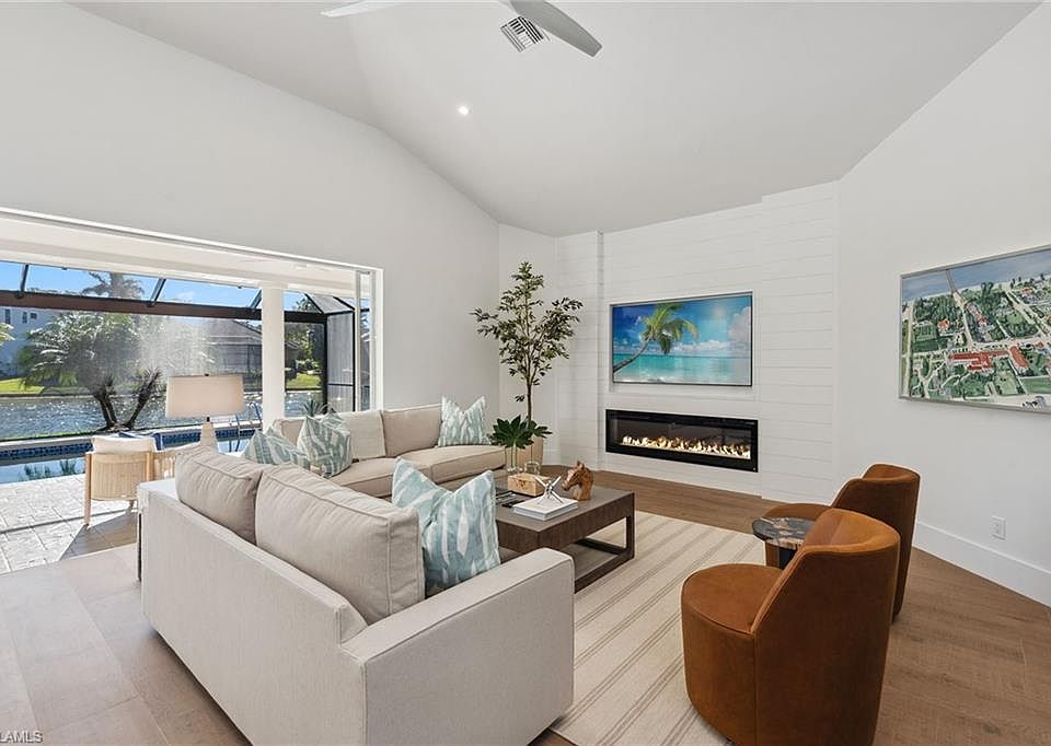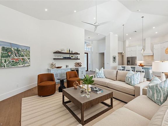 This designer-remodeled estate home is Naples perfection. At the end of a private cul-de-sac street, this beautiful residence is on .30 of an acre and features winding water views. Not one detail was overlooked in the thoughtful remastering of this home, as its soaring ceilings and open floor plan highlight countless upgrades, such as a designer furnishings package, luxury plank tile flooring throughout, LED recessed lighting, designer light fixtures, new interior doors, baseboards and hardware, plus more. The new chef-inspired kitchen will delight entertainers with its oversized island, solid wood cabinetry, premium appliances, quartz countertops and walk-in pantry, while the expansive great room is ideal to gather with friends and family with its bar feature and built-in media wall. Each of the three spacious bedrooms is beautifully appointed. The grand owner’s suite features a stunning spa-inspired bath and oversized walk-in closet with custom built-ins. The two guest bedrooms are privately situated across the home and feature a beautifully appointed guest bath that also acts as a pool bath. Out back, one can live the Naples lifestyle while enjoying the sparkling swimming pool, large covered lanai and sparkling water views. This home is sure to impress the most discerning. Residents of Lely Island Estates enjoy low carrying costs and benefit from having Marco Island and downtown Naples just a short drive away. Membership at the incredible Player's Club is optional and offers its members resort-style amenities. Golfers have the option to join The Classics Country Club or take advantage of Lely's two beautiful public courses.