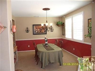 Ask About Lease Option. Upgrades Galore! Granite Kitchen with GE Profile Stainless appliances. Living Room, Family Room, Dining Room, Fireplace, Shutters, One bedroom with bath downstairs. Uptstairs Master has it's own balcony. Kitchen is highly upgraded. Abundant cabinetry and counter space. Large Pantry. Large sit down center isle. Large inside Laundry with sink and more cabinets. Upstairs Office and 3 bedrooms. Tall Ceilings Everywhere. Lovely Rear Veranda. Home is in excellent condition. 3 zones of HVAC. Low tax area for North Indio. Close to New Schools and Shopping.