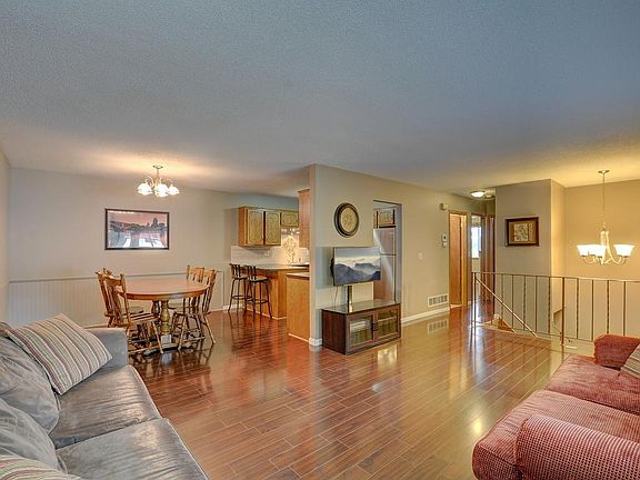 VERY LOW ASSOCIATION FEE! This quad townhouse with a clean, crisp interior has 3 bedrooms, 2 bathrooms, and a 2 car garage. The kitchen features a breakfast bar, stainless steel appliances including a new refrigerator, and backsplash. The walkout basement has a remodeled bathroom with Onyx shower. Featuring a spacious living room, hardwood floors, newer windows and HVAC, and a new insulated garage door. Numerous parks nearby and close to Bunker Hills recreation area and a library.