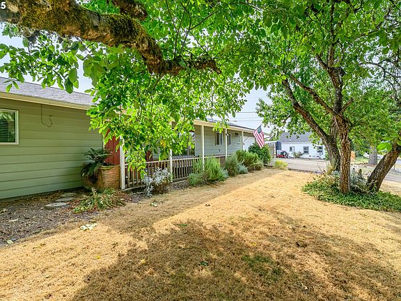One level home with an abundance of character. This is your chance to live in a great small town and still be close to amenities. Covered porch welcomes friends into this inviting home. Corner wood burning fireplace in the living room warms the home and your heart as you enter. Living room is nicely sized and front window offers an abundance of light. Beautiful hardwood floors in living and bedrooms have been refinished. Three bedrooms (one non-conforming) and a bath make up the sleeping areas and provide nice privacy. Galley style kitchen includes a newer gas stove. Fridge negotiable. Den/office (no closet) can be 3rd bedroom with a backyard view. 1/2 bath and utility next to garage. Dining room is bright and cheery with a slider leading to the fenced backyard and covered patio. Wonderful space for get togethers. Updates include remodeled bathrooms and a brand new roof in July 2025. Oversized 2 car garage includes a workbench. Outside provides abundant parking and gated RV parking. Don't miss out on this gem if you want to begin your home ownership journey!
