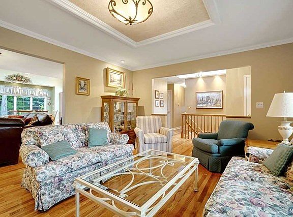 Wait until you see this home! Pristine and updated! Perched upon a picturesque piece of property at the end of a cup-de-sac. Private and serene. This ranch has been lovingly cared for and has been the pride and joy of the owners.Bright and airy is the only way to describe this home. Let the sun shine in! During those intimate get togethers you will love the formal living room. The hub of the home is the updated cherry kitchen equipped with high end appliances, an inviting dining area and a family room. This open floor plan is perfect for entertaining or relaxing with the family. The master bedroom has been expanded and boasts a lovely master bath. Two additional bedrooms and a full bath. Laundry area is conveniently located off the kitchen. Finished basement and a two car attached garage.