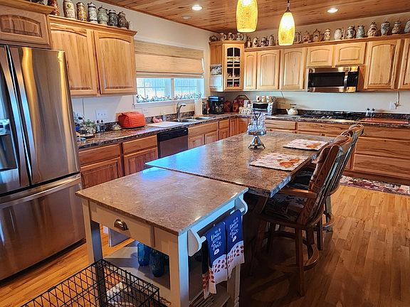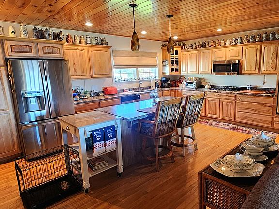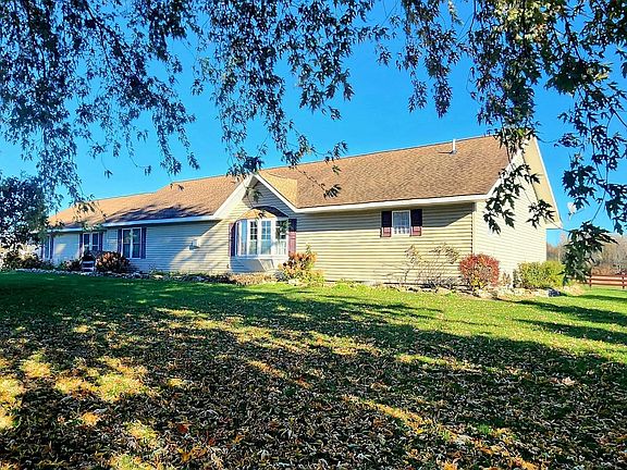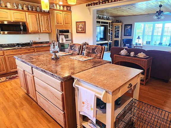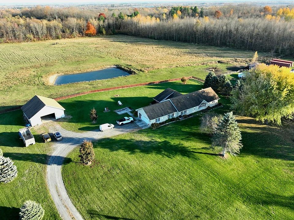Settle into the serene countryside with this truly move-in ready, beautiful ranch home, perfectly situated on a peaceful 11.6-acre parcel within the esteemed Heuvelton School District. This quality-built modular home immediately impresses with its oversized rooms and a flowing, open floor plan designed for modern living and grand entertaining. The heart of the home is the stunning kitchen, a masterpiece featuring exquisite Amish-made hickory cabinetry, a central island with comfortable seating, and a complete set of gleaming stainless steel appliances that are included in the sale. This culinary space effortlessly shares the dining and living areas, where a cozy propane gas fireplace creates a warm, inviting atmosphere. Step through to the light-filled sunroom, a glorious retreat lined with windows that provide unparalleled views of your private meadow. The home offers three spacious bedrooms and two full baths, including an extra-large primary suite that serves as a luxurious sanctuary, complete with a beautifully appointed ensuite bathroom and a substantial closet. Beyond the elegant interiors, the property boasts incredible utility with two fantastic garages: one attached with extensive storage, including convenient pull-down access, and a second, much larger, 36 x 36 detached garage with its own electricity and vast storage, offering the ultimate canvas for the workshop or hobby space of your dreams. This is more than a home; it’s a private, beautiful estate with it's own spring fed deep pond and vast meadow just waiting for you to simply unlock the door and start living. Spectrum Internet is not available at this location other internet options would be Slic, Verizon or Starlink.