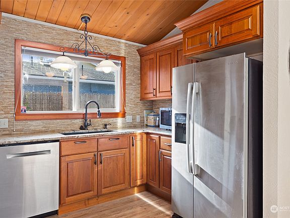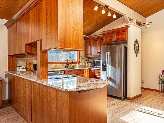 Great location this house is blocks from hospital, doctors offices, shopping and bus line. Kitchen, both bathrooms and laundry room have been remodeled. Beautiful vaulted wood ceilings thru-out the house. Extensive Zen Garden landscaping in backyard includes built-in fire place, water feature and sprinkler system. Exterior side door for easy access to kitchen. Fully fenced back and side yard. Two Mini splits heat system. Chimney for future fireplace. Covered parking. One year Home Warranty included in sale. This corner lot home has plenty of room to make it your forever home.