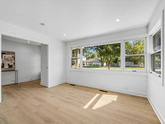 Modern Elegance Meets Cozy Comfort in Glenview! Welcome to 834 Meadowlark Lane - a newly renovated 5BR/3BA ranch home in one of Glenview's most desirable neighborhoods. From the inviting front porch to the custom paned entry door, every detail has been thoughtfully designed to blend modern luxury with everyday comfort. Step inside to beautiful wood beamed ceilings, abundant natural light, and an open-concept floor plan enhanced by high-end finishes. The front bedroom/office features frosted glass pocket doors, while two additional bedrooms share a stylish hallway bath with a white double trough sink, tub/shower w/frameless glass swing panel, and rich gold fixtures. The chef's kitchen is a true showpiece, with designer-selected natural wood cabinetry, white quartz countertops, cabinet pantry, a spacious island, and new stainless-steel appliances. The serving bar with floating wood shelving adds both beauty and function to the eat-in area. The kitchen flows seamlessly into the family room, anchored by a stone fireplace with a stone mantle and marble sconces-perfect for cozy evenings at home. Hidden behind a paneled door, the private primary suite includes a spa-like bath and walk-in closet. Throughout the main level, rich LVP floors tie the spaces together. Downstairs, the fully finished basement offers endless versatility: a wet bar with beverage fridge, reading nook, exercise room, laundry, guest suite, and full bath - all finished with matching luxury flooring. Outdoors, the new paver patio, landscaped fenced yard, and gated driveway provide both style and safety for entertaining and play. A detached extra large 2-car garage offers easy access from both the side and rear entrances. This home has been meticulously updated top to bottom-move-in ready for today's most discerning buyers. With low taxes, proximity to parks, top-rated schools, downtown Glenview shopping, and both Metra stations, it's the perfect blend of convenience and charm. Don't wait - make 834 Meadowlark Lane your new home before the year ends!