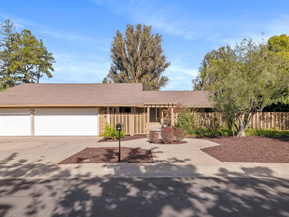 Excellent opportunity on a cul-de-sac w/expansive 20k+ sq ft lot! This single-story ranch-style home features 5 bedrms , 2.5 bathrms (5th currently used as an office), approx 2,639 sq ft. The freshly painted, bright & airy floor plan boasts formal dining & living rooms which are full of light, w/vaulted ceilings & a wood-burning fireplace. Separate family room also enjoys high ceilings, a 2nd wood burning fireplace & leads directly to the massive yard. Eat-in kitchen features a gas cooktop, updated appliances & granite countertops. Primary bedroom offers soaring ceilings, a private bathroom w/dual vanity & walk-in closet. Step outside and envision your dream outdoor space. Other amenities include an attached 3-car garage & indoor laundry room. Superbly situated near local schools, parks, shops, restaurants, freeway access, and major employers. Enrollment to award-winning Palo Alto schools & walking distance to Gunn High. (Buyer to verify)
