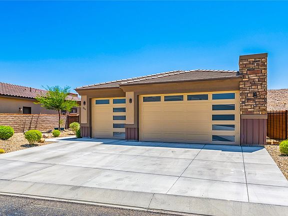 LOOKING FOR THAT LOW INTEREST RATE? Take advantage of an ASSUMABLE 4.125% interest rate & check out this lovely 1488 sf 3 bed 2 bath home that is located in the sought-after community of Laughlin Ranch. The front yard curb appeal to this home is exceptional with its desert landscape, covered front porch, & stacked stone accents. Step through the leaded glass front door & into the open concept designed home with entry foyer that leads to the living room & kitchen areas. The living room is spacious in size & features laminate flooring, & a slider to the backyard patio. The adjoining kitchen area has exceptional features including a breakfast bar island, quartz counters, stainless appliances, gas range, self-closing cabinets, pendant lighting, & pantry. The primary suite is situation on the backside of the home & offers those same great laminate flooring, private slider to backyard, walk in closet, dual sink quartz vanity, & walk in style tiled shower. The 2 guest bedrooms & guest bathroom are located on the front side of the home & are both spacious in size, while the guest bathroom offers a tub/shower combo. An in-house laundry room, ceiling fans throughout, window coverings, & a water softener/ro drinking water system round out the interior features of this home. Need room for your water & desert toys? This garage has you covered as it's a 3 car 30' boat deep garage. A private backyard with both covered & uncovered patio spaces, & still room for a small pool or spa. The Laughlin Ranch gated golf course community features an 18-hole championship golf course, community clubhouse with full restaurant, bar, & event area. The community clubhouse also features an award-winning spa & salon with fitness center & community pool (additional fees apply as clubhouse is open to the public). Come check out this lovely home & start living the Laughlin Ranch lifestyle!