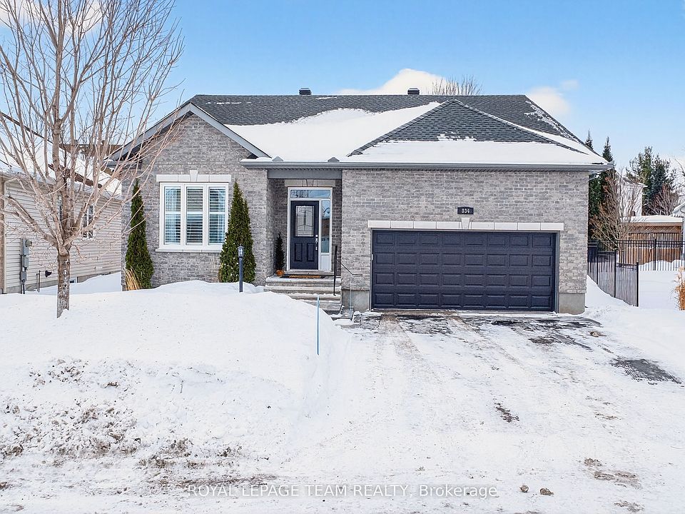 Welcome to 834 Rockson Crescent - a highly sought-after custom-built Metric home offering 3+1 bedrooms and 3 full bathrooms, thoughtfully designed for both comfort and style. From the moment you enter, you're greeted by a bright and inviting foyer with tiled flooring that transitions seamlessly into rich hardwood throughout the main living space. Soaring 12-foot cathedral ceilings create an airy, open atmosphere that enhances the home's natural light and architectural presence. The open-concept kitchen and living area is beautifully appointed with elegant window shutters, a striking natural gas stone fireplace, and a functional island with abundant counter space. A rare oversized walk-in pantry provides exceptional storage and everyday convenience. The main level also features convenient laundry, inside access to the garage, neutral tones throughout, two linen closets, and three generously sized bedrooms. The serene primary retreat offers 9-foot ceilings, a walk-in closet, and a spa-inspired ensuite complete with double sinks, a spacious walk-in shower, and slate-colored ceramic flooring. Upgrades include 33" doors for mobility (with exception of 2 front bedrooms). Enhanced soundproof insulation in select main-floor walls and the lower level adds an extra layer of comfort and privacy. The finished lower level, complete with Berber carpeting, includes a fourth bedroom with a generous closet, a full 3-piece bathroom, and a large recreation room ideal for a home gym, media space, or flexible family living. Lower level has rough-in for wet bar or kitchenette. Step outside to an expansive back deck perfect for summer entertaining, along with a functional patio area and fully fenced backyard for added privacy. This property offers a seamless blend of functionality, warmth, and timeless appeal in a desirable neighborhood of Stittsville on a private crescent.