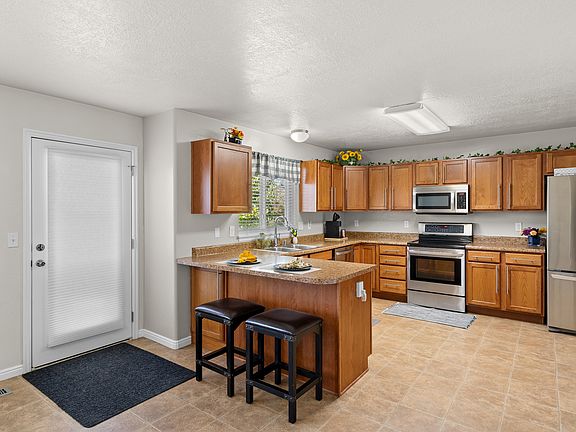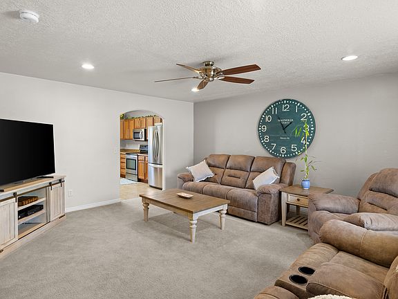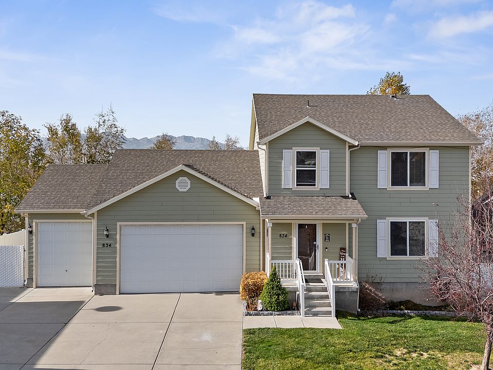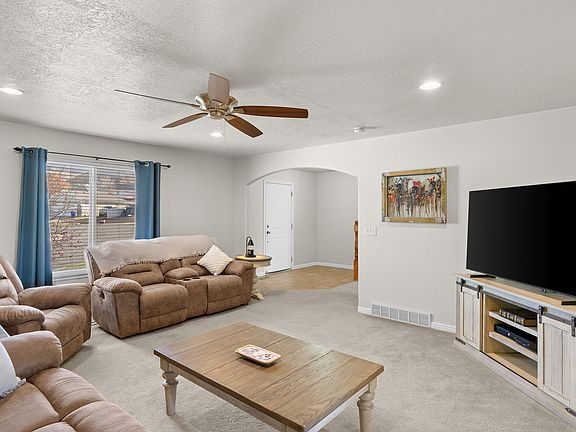 Spacious and open, this home is built for comfortable everyday living. The main level offers a large kitchen with plenty of counter space and a handy pantry, flowing easily into the dining and living areas for a bright, open feel. Enjoy beautiful mountain views from both the front and back. Upstairs, the laundry is conveniently located near the bedrooms. The primary suite features a separate tub and shower plus a generous walk-in closet. Outside, you'll find a long RV pad, a great patio area for relaxing or entertaining, and plenty of parking in the wide driveway. The unfinished basement is ready for your future plans.