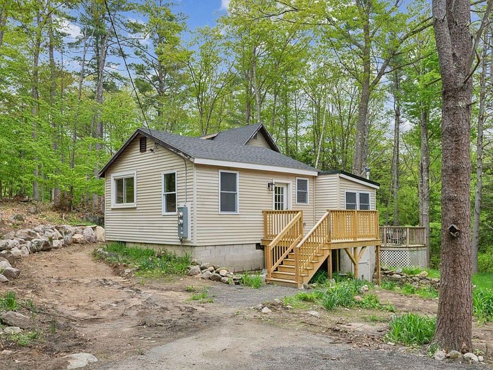 Experience all four seasons of Maine from this beautifully renovated two-bedroom, one-bath apartment located directly across from Sebago Lake. Everything inside is brand new from the floors and lighting to the kitchen appliances and bathroom fixtures. The bright, open layout flows into a private deck surrounded by pine trees, creating the perfect blend of modern comfort and nature. This peaceful home sits just a minute from Nason's Beach, five minutes to Sebago Village and Naples Causeway, and less than thirty minutes to Pleasant Mountain Ski Area. Enjoy ice fishing across the street in winter, kayaking and swimming in summer, and year-round access to southern Maine's best outdoor recreation. It's a rare opportunity to secure a 12-month lease in a sought-after lake community while still being under an hour from Portland and North Conway.