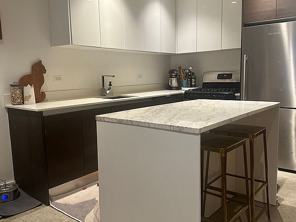 Gorgeous 2 bedroom, California-inspired living in Brooklyn. High ceilings, polished concrete floors throughout and lots of light. Newly installed HVAC system with Nest in each room, can be controlled by Alexa/Google. Remote controlled blinds in bedrooms and the best part, a 120 sqft private terrace perfect for entertaining! This condo also has floor to ceiling triple pane accordion doors which open up to allow you to combine both interior and exterior living space. Inside you are greeted with a large living/dining room area, with architectural elements. Chefs kitchen with stainless steel bosch appliances including dishwasher, beautiful caesarstone countertops and a marble kitchen island with wine rack . The bathroom features a deep soaking tub with rain shower and floor to ceiling tiles. 2 large southern exposure bedrooms located at the back of the apt have beautiful light streaming in. Both bedrooms contain built-in closets. Another closet just outside the rooms houses a washer & dryer. The private terrace is a big bonus since it opens up directly from the living room. Amazing location with many top eateries and bars and only a few mins walk from the subway. High speed internet via Fios available