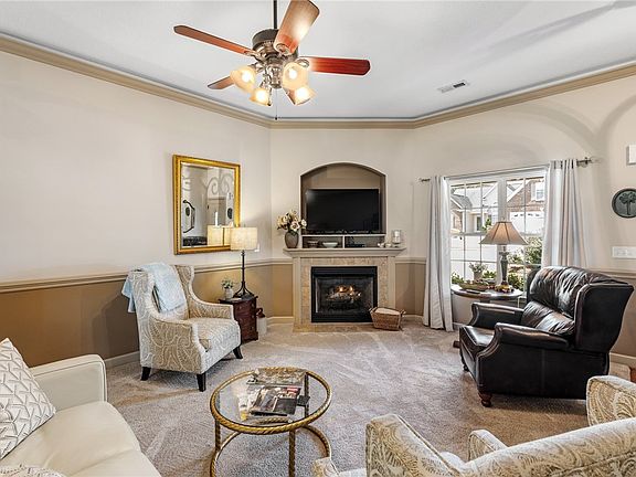 - Ceiling Fan(s), Dual Sinks, Fireplace, Granite Counters, Garden Tub/Roman Tub, High Ceilings, Jetted Tub, Bath in Primary Bedroom, Main Level Primary, Pull Down Attic Stairs, Smooth Ceilings, Separate Shower, Walk-In Closet(s)