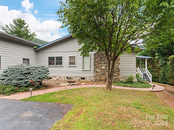 flowing into the great room with stone wall fire place with gas logs, a bright sun room, and a spacious primary ensuite with a walk-in shower. The attached 2-car tandem garage offers 500+ sq ft of storage. Come relax on the covered rear deck with peaceful long range mountain views all located close Blue Ridge parkway entrance and Waynesville commons shopping center.