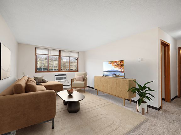 First floor one-bedroom, one bathroom apartment in Bloomington, Available 5-1-2025, MN. Prime location, near 35W, 494, Mall of America and Southtown shopping Center. Large back yard and large parking lot, building laundry facility, storage lockers available. This 1st floor apartment has newer carpet, newer air conditioning wall unit and window blinds, updated bathroom and a ceiling fan in the bedroom. Kitchen has Ikea cupboards, gas range cooking, microwave and a dish washer. Monthly rent of $950.00 includes heat and gas for gas range cooking. $800.00 damage deposit with a one-year lease. No pets allowed. Also available 5-1-2025, 2nd floor one-bedroom apartment monthly rent $950.00 with an $800.00 damage deposit and one-year lease.