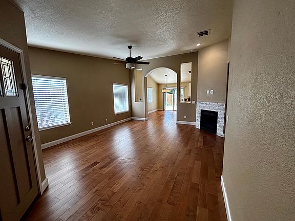 Cozy stone fireplaceSide yardNewly re-stained exterior fenceKitchen islandAbundance of natural lightRemodeled residenceOpen concept