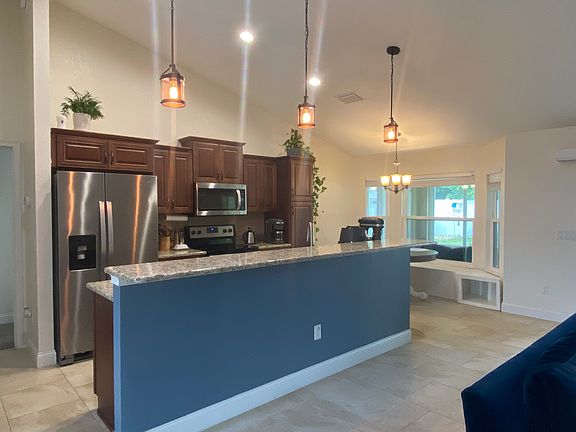 Charming 3-bedroom home for rent just a short drive from the vibrant community of The Villages! This inviting residence boasts a large open-plan living area that seamlessly transitions to a covered patio/ Florida room for relaxing and entertaining. The patio overlooks a beautifully maintained fenced-in backyard, complete with a fire pit and raised vegetable beds, ideal for gardening enthusiasts.