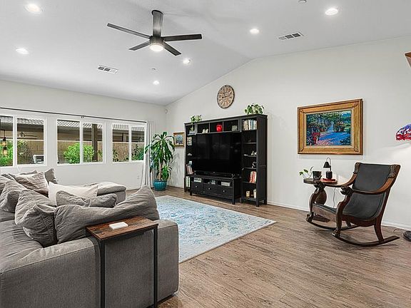 Welcome to your desert retreat in the heart of Indio. This spacious 4-bedroom, 3-bath smart home offers the perfect blend of modern luxury and desert tranquility. Featuring a bright, open floor plan, high ceilings, and expansive living areas. The gourmet kitchen features stainless steel appliances, quartz countertops, and a large island, making meal prep a breeze. This home is ideal for both entertaining and relaxation. Enjoy the serene desert landscape with backyard orchard which includes 4 varieties of orange trees, 2 pomegranate,1 kumquat, 1 grapefruit,1 lime,1 lemon,1 fig,1 peach and 1 mango tree. Complete with a sparkling salt water pool, spa, and ample space for outdoor gatherings. Conveniently located near schools, shopping, easy access to major highways, golf courses, and world-class entertainment, this home provides the perfect balance of comfort, style, and convenience.