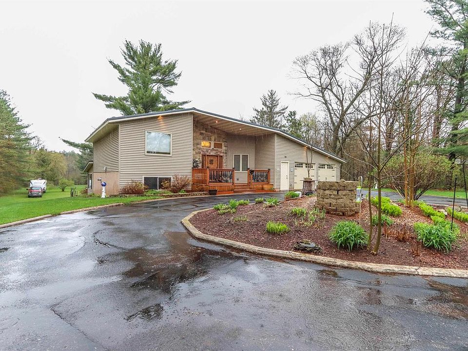 Welcome to this stunning and updated quad-level home nestled on a picturesque 2.7-acre lot, featuring a peaceful creek running behind the property. Boasting 3 bedrooms and 2.5 bathrooms, this home offers over 2255 square feet of finished living space, providing ample space for you and your family to spread out and make memories. As you step inside, you'll be greeted by the warm and inviting atmosphere of the main level living area, complete with large windows, offering plenty of natural light and breathtaking views of the surrounding landscape. The kitchen, located just off the living area, boasts plenty of cherry cabinets and counter space, making meal preparation a breeze. The upper level of the home features the master bedroom, complete with an en-suite bathroom, providing the perfect retreat after a long day. The lower level of the home features a comfortable family room, ideal for family movie nights, as well as two additional bathrooms and laundry room.,With its idyllic setting and ample space, this property offers endless opportunities for outdoor living and entertainment. Enjoy barbeques and gatherings on the expansive deck and gazebo, taking in the tranquil sounds of the creek and the natural beauty of the surrounding landscape. Located in a convenient area, this home provides easy access to Wisconsin Rapids and Plover. Don't miss the chance to make this breathtaking property your own and start enjoying the peace and tranquility of creek-side living today! Black dog gate in back yard is not included.
