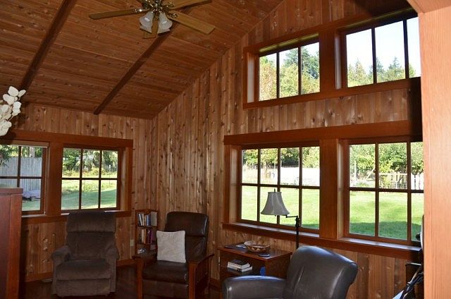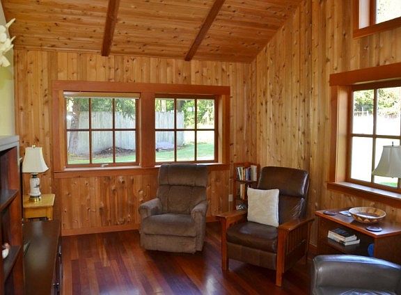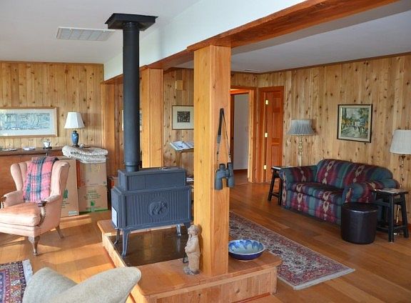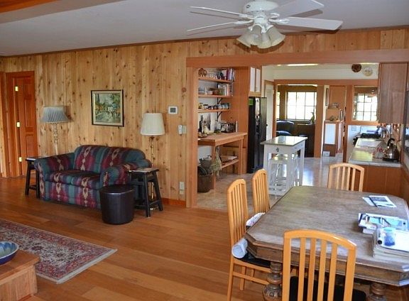 MUST SEE TO APPRECIATE THE CRAFTSMANSHIP THROUGHOUT! 2,656 SF With beautiful hardwood floors, tongue and grove vaulted ceilings, redesigned open kitchen, wood windows and just added 1/2 bath off of front bedroom. Crows nest used as office or BR. 180 feet of waterfront, 3 acres fenced pasture, mini farm, garden and fruit trees. Huge shop, carport and studio with bay view and kitchen & bath. Outbuildings. MLS# 703765