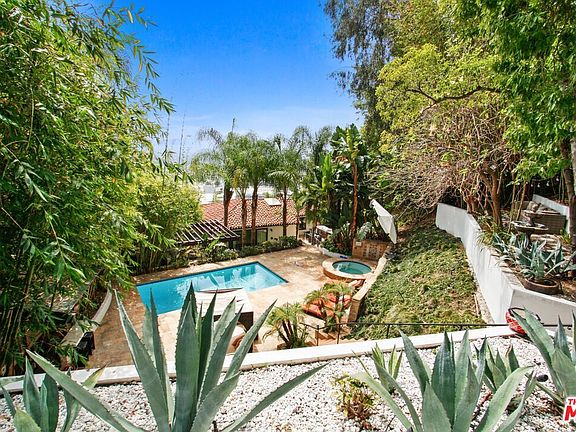 Sunset West A Lush, Private Escape Just Moments from the Sunset StripWelcome to Sunset West, a one-of-a-kind Spanish estate offering unmatched tranquility, privacy, and luxury all set just steps from the famed Sunset Strip. Tucked behind dual security gates, this designer-furnished retreat is a rare blend of serenity and city convenience, with the best of West Hollywood and Sunset Strip within walking distance.This beautifully maintained residence was originally crafted as a 3-bedroom, 3-bathroom home. One of the bedrooms has been transformed into a sleek media room but can easily be restored if needed. From curated architectural details to twice-weekly maid service, every element has been thoughtfully designed for elevated living.The primary suite is a sanctuary of its own, complete with panoramic views of the city and direct access to the breathtaking backyard. Outside, indulge in a private resort-style setting featuring a pool and spa, cabana with daybeds, fire pit, and a full outdoor kitchen with built-in BBQ perfect for entertaining or relaxing under the stars.Surrounding the home are three distinct garden settings, including two fruit orchards and a tropical garden, creating a botanical experience unlike any other. Wellness lovers will enjoy a dedicated outdoor fitness area, a bamboo shower, and a peaceful yoga/Pilates studio ideal for morning movement or post-workout recovery. A private massage space and two cozy outdoor fireplaces add to the estate's spa-like ambiance.To top it all off, the property includes a sky bar with sweeping downtown LA views, a secure 2-car garage, ample storage, and absolute privacy throughout.Don't miss your chance to experience this extraordinary oasis. Showings available by private appointment only.