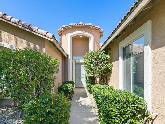 This CHARMING home is located in a quiet interior location of the gated community of Shadow Hills. The open floor plan seamlessly connects the great room, kitchen, and formal dining room, with an easy transition from indoor to outdoor living. The large primary bedroom has direct access to backyard. Tile floors throughout the main living areas and warm desert paint shades throughout. Three guest bedrooms (one located off of the kitchen with adjacent bath) are well positioned in separate areas of the home to allow for maximum privacy. Kitchen features warm wood cabinetry, island and breakfast table area. Adjacent family room with tile floors, gas fireplace and direct slider access to the patio and pool areas. Beautiful backyard space with aluma-wood type patio cover and cool-deck patio make this a perfect all seasons lounging and entertaining area. To the side of the house is enclosed RV parking 50ft long x 12ft wide. Some additional highlights include 2 new Air Scrubbers, tinted windows, window shutters, artificial backyard accent grass and new Salt Cell and pool pump. Shadow Hills does not have age restrictions and offers LOW HOA fees. It is also part of the lower cost IID power company. Just minutes away from world class golf, tennis, shopping, dining and music festivals. NOTE: Some furnishings available outside of Escrow.