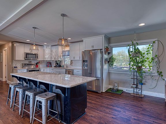 Room to grow in this lovely 5 bedroom, 3 full bath ranch home with walkout basement on .53 acres. Approximately 2451 finished sq ft. 3 bedrooms on the west end and two bedrooms on the east end. All located on the main level. The lower level has a finished room with double closets and a bath. Total kitchen remodel in 2020. New windows 2020, and 2023. New appliances (except dishwasher). Brand new HVAC, October, 2025. Roof was replaced in the last 2 years. Basement bath remodel in 2024. 2 car attached garage, on large lot. Pole barn, has electric with built in chicken coop. Chickens are negotiable. Great location that offers a country feel but convenient to everything. Castle schools. Sellers are offering a AHS Home warranty for $575.00. Home is ready for hook up for a whole house generator. (No generator).