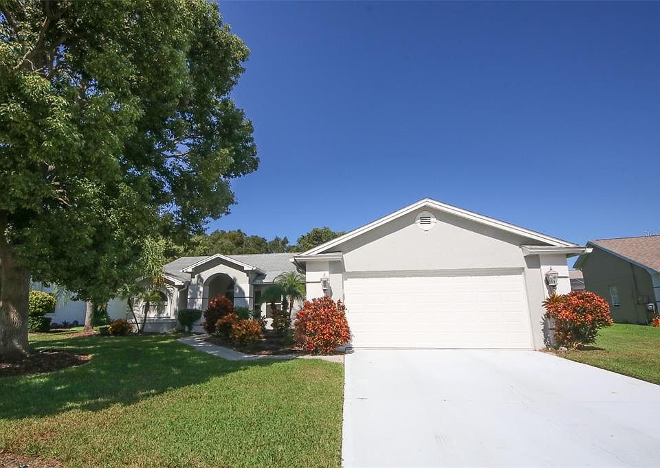 Welcome to this truly one-of-a-kind 3-bedroom, 3-full bath home situated in the highly sought-after Estates community of Hudson! This home features an open and split floor plan, ideal for both comfortable living and entertaining. Perfectly positioned near the Clubhouse, you will have easy access to newly renovated recreational amenities and a stunning pool—making relaxation and fun just steps away from your front door. Step inside to find airy, lofty ceilings, elegant, recessed lighting, and an abundance of windows that fill each space with natural sunlight. The open-concept layout seamlessly connects the living areas, while neutral colors, laminate and ceramic flooring, and marble windowsills add refined touches throughout. The remodeled kitchen is a chef’s dream, boasting granite countertops with a breakfast bar, stylish new cabinets, and top-of-the-line stainless-steel appliances. Enjoy your morning coffee at the dedicated coffee bar, complete with a bar fridge and space for a dinette table that overlooks the tranquil backyard. A spacious storage area off the kitchen provides ample room for all your extra items. The family/dining room combo features a convenient coat closet and is perfect for hosting gatherings. For even more entertaining space, this area flows into a versatile bonus room and a full bathroom, ideal for guests or as an entertainment hub. Step out to the lanai, which offers acrylic windows, ceiling fans, and an outdoor patio area primed for grilling. Electrical is already set up for a hot tub, enhancing the outdoor experience! If you prefer a quiet work-from-home environment, the bonus room can easily be transformed into a spacious office. The split floor plan ensures privacy and convenience. Two bedrooms share a full bath equipped with a shower/tub combo, and one bedroom features a pocket door for direct bathroom access. Storage is plentiful, with an enormous walk-in closet, a linen closet, and an oversized linen/storage closet located near the second full bath. The primary suite is tucked away on the opposite side of the home, offering its own walk-in closet and a luxurious en-suite bathroom. The en-suite boasts dual vessel bowl sinks, a step-down ceramic tiled shower with recessed lighting, and plenty of space to unwind. Ceiling fans installed throughout the home for year-round comfort, dual-paned windows for noise reduction and energy efficiency, marble windowsills and elegant fixtures, open and split layout for flexible living arrangements Enjoy all the perks of living in The Estates, with close proximity to the Clubhouse’s newly renovated recreational facilities and swimming pool. Whether you prefer family gatherings, quiet evenings, or hosting friends, this home’s unique floor plan is designed to meet your needs. Don’t miss your opportunity to own this truly exceptional home in Hudson. With its distinctive features, modern upgrades, and unbeatable location, this property is one in a million! Call today for your showing!