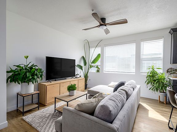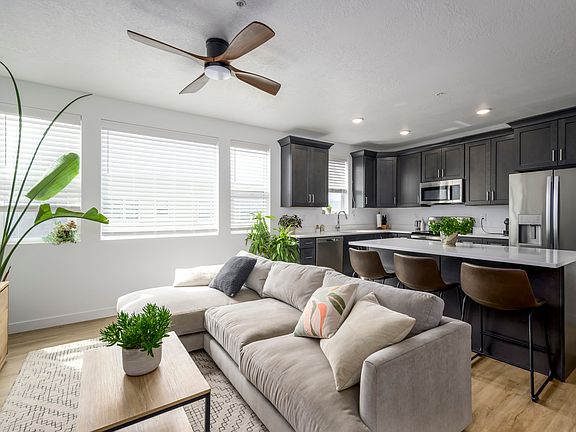 This immaculately clean and nearly brand-new Top-Level Condo is looking for its owner! This new community borders the Jordan River and offers tons of natural light for your plants, high ceilings, a modern kitchen, and views for days. This unit has ceiling fans and a custom storage shed at the front of the carport and we are priced well below the brand new options. Come on by for a peek, fall in love, and let's get into your new home! HOA does allow long-term rentals! Buyer to verify all!