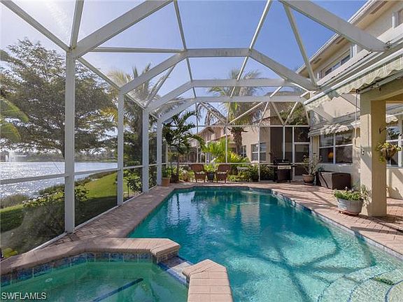 Stunning lakefront pool home on a corner lot in beautiful Catalina Isles. This immaculately kept home features a granite kitchen with center island, breakfast bar, upgraded cabinets and glass block counter mounted windows. With a gorgeous southern exposure, this home offers tons of natural light and neutral colors. Don't miss a great opportunity to view this fantastic two story featuring 3 spacious bedrooms + den, large loft/media room, plenty of extra storage, side load garage, oversize screened lanai with heated pool/spa overlooking the large lake and water fountain. Catalina Isles offers gated security, heated pool, clubhouse, exercise facility, children's playground and hassle-free yard maintenance and cable are included in your reasonable monthly community fee.
