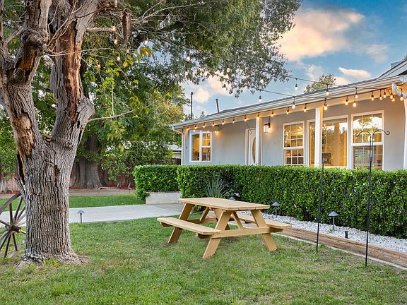 PROPERTY WILL NOT BE AVAILABLE FOR SHOWINGS UNTIL 12/5/204. Charming one-story Ranch located in a much sought after area of Northridge. Offered furnished at $7,000 per month or unfurnished at $5,500 per month. Offering privacy and tranquility, this gated home features 3 bedrooms, 2.5 bathrooms with 2,583 square feet of living space on a 16,400+ square foot lot. Upon entering the property you'll be greeted by a beautiful circular driveway and lush landscaping leading you to the front entry with a cozy covered front porch. Light and bright living room features durable wood-like floors, recessed lights, dual pane windows with custom shades and an exquisite modern fireplace. An open and airy floor plan allows for the kitchen to be conveniently adjacent to the living room. Sun filled kitchen with all the "bells & whistles," features granite counter tops, breakfast nook with built in sitting area, additional breakfast bar, center island with wine rack & trash compacter, stainless steel sink with garden window overlooking the front grounds, Sub-Zero stainless-steel fridge, GE Monogram stove and adjacent laundry room plus updated modern powder room. Step down family room with vintage heatilator fireplace and sliding glass door overlooking the backyard offers a great space for gathering and indoor/outdoor entertaining. Sumptuous sunken primary suite features sliding glass door that overlooks the private enclosed patio area with spa tub and wood paneled wall with built-in TV. The primary suite also features a large walk-in closet and a remodeled primary bathroom with dual sinks, skylight and over-sized walk-in steam shower stall with custom tilework, overhead showerhead and sitting bench. The North Wing of the home also features two well sized bedrooms with built-in cabinets/drawers and share an updated hallway bathroom with granite countertops, vessel sink and large tub. Additional features include Nest Thermostat, wiring for an alarm system and 220 electrical. The ADU unit in the back of the house is rented and the entrance to the property is shared by both. Tranquil and serene fenced in backyard features covered patio with sitting area, firepit and low maintenance backyard. Truly a great opportunity. Landlord pays for gardener. The ADU unit in the back of the house is rented & the entrance to the property is shared by both. The property is on septic tank & the water bill is split between the Main House & ADU, with each paying their respective amounts. Landlord will not maintain or replace outdoor above ground spa.