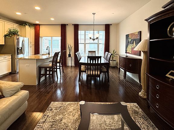 This exquisite 2-bedroom, 3-bath townhome is the perfect blend of luxury, comfort, and convenience. Step into the spacious master bedroom with vaulted ceilings, a raised vanity, and a walk-in closet that adds a touch of elegance to your personal retreat. The second bedroom features its own full bathroom and walk-in closet. The kitchen is a chef's dream, with 42" cabinets, crown molding, high-end appliances, and a door-in-door refrigerator. The home also offers a cozy study with French doors and a sunlit den, perfect for relaxing or working from home. For added convenience, the laundry closet is located on the first floor. Outside, enjoy peaceful views of a serene pond, and take advantage of the 2-car attached garage for easy parking and storage. Located in a commuter's dream location, this townhome is just a short walk to the Metra station, allowing you to work in the city and live in the suburbs-skip the traffic and enjoy the best of both worlds. Plus, you're close to major highways (I-94 and I-294), shopping, dining, parks, a forest preserve, a library, and top-rated schools. Don't miss the opportunity to own this stunning townhome in an unbeatable location!
