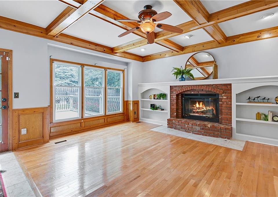 CHARMING 2-Story in The Cedars! Tucked away on a partial cul-de-sac in the heart of Lenexa, this beautifully maintained 5 bedroom (non conforming in basement), 3.5-bath home is truly move-in ready. NEWER WINDOWS, HVAC, ROOF, & CARPET! Step inside to find hardwood floors throughout the main level, a cozy fireplace with built-ins, and a wall of windows overlooking the huge backyard. The kitchen shines with freshly painted white cabinets, granite countertops, newer appliances, and a breakfast bar. An office and formal dining room complete the main level. Upstairs, the upgraded wood staircase with wrought iron spindles leads you to a huge primary suite featuring its own fireplace, sitting room & his/her closets one very large with room to expand further into attic. The spa-like bath offers a soaking tub, double vanities, and a separate shower area. Three additional bedrooms, a full bath with cathedral ceiling, brand-new carpet & convenient laundry room. The finished lower level is perfect for entertaining or relaxing, with a large family room with bar, full bath, 5th bedroom and abundant storage. Outside, enjoy the oversized deck with gazebo, additional patio space for grilling, and side parking for extra vehicles. Conveniently located near shopping, restaurants, parks, schools, and the local library. True pride of ownership in this beautiful home!
