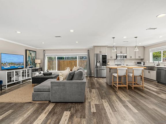 Well maintained 3Bed/2Bath, large kitchen to family room with built-ins and stainless steel appliances, oversized sink, pendant lighting over Island, canned lighting throughout the home, open floor plan with finished backyard, 2 car garage with sealed garage flooring in sought after Carlton Oaks neighborhood. Two full sized bathrooms with art decor tile, 1 with full size tub and 2nd with low threshold walk-in shower. This home was remodeled in 2019 and sellers have maintained its beauty along with finishing the backyard, adding turf and landscaping, retractable screen doors to accommodate French doors, renovated garage roof to slanted roof water roll off with double layering, glass storm door entrance and a new water heater. Agent related to Seller. Agent related to Seller. Wild Life may or may not be seen from golf course. Golf balls may or may not be seen. Beautifully maintained interiors with LVP, Island with Woodblock top (never been used without a cover), large bay windows, 2 French door sets with one in the primary bedroom and one just off the kitchen/family room combo bringing the outside in with ease. Newer vinyl windows & large bay windows in family room along with the openness offer tons of natural light throughout the home. The 9,172 SF oversized lot has a Turf backyard, partially covered patio and mulch side yard, easy entry and storage side yard on opposite side of the home and plants on drip system for both front and back yards for easy maintenance. Backyard abuts Carlton Oaks Golf Course. Golf Course may or may not be upgraded, redeveloped or other with Hotel, Spa, new course and residential units. West Hills High School and Carlton Oaks school are nearby. Easy freeway access to both HWY 52 and HWY 125. Santee is a city with parks, recreation centers & sport facilities, its own Costco/Gas, Lowes, Kohls, Target, Home Depot, and multiple large shopping centers and strips for restaurants, groceries, yoga and more! See breakdown in docs of $162.40 for special assessments water, mosquito, fire, vector and other. Tax records show 4 Bed, but is a 3 bedroom. See prop info in docs. Buyer to investigate all claims and do their due diligence to satisfy any/all of their concerns.