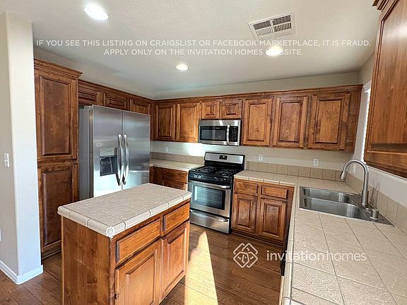 Home Features and Amenities: Air Conditioning, Fenced Yard, Garage, Hardwood Floors, Kitchen Island, Long Lease Terms, Patio, Pet Friendly, Recessed Lighting, Smart Home, Stainless Steel Appliances, Tile, W/D Hookups, and professionally managed by Invitation Homes.