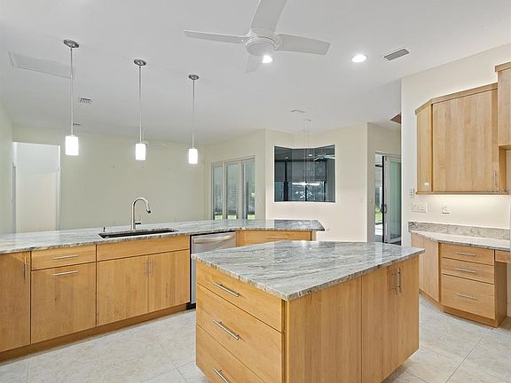 This luxury home was built as one of just a few BARBADOS models and was then modified, expanded and upgraded by these very particular owners. The gracious floorplan includes a beautiful dining room with an open butler's pantry/bar flowing from the dining room to the kitchen. The kitchen is large with plenty of cabinetry and a breakfast nook open to the Family Room. The PRIMARY SUITE is on the right side of the home and includes two walk-in closets, a COMPLETELY RE-DESIGNED BATH WITH NEW CABINETS, including a BUILT-IN HAMPER, LIGHTING AND A BIG BEAUTIFUL WALK-IN SHOWER...PLUS an incredible 10 x 15 WALK-IN CLOSET (originally built as a Den with access to the foyer). ALL CLOSETS IN THIS HOME WERE PROFESSIONALLY DESIGNED AND FINISHED. Two wall safes have been installed and are included. The 3 secondary bedrooms and two baths are on the left side of the home. Both of these baths were UPGRADED with NEW WALK-IN SHOWERS AND NEW LIGHTING. The KITCHEN was gutted and RE-BUILT with AN ISLAND, UPGRADED GRANITE and CLEAN DESIGN CABINETRY featuring PULL OUT SHELVES IN THE CABINETS, DRAWER STORAGE, SLIDE OUT PANTRY SHELVING AND MORE! The range is now electric, but the gas pipe remains behind it if gas is preferred. WOOD FLOORING was installed in the living room, dining room and family room. HIGH END LIGHTING is apparent everywhere. PELLA WINDOWS AND SLIDERS WITH BUILT-IN BLINDS AND A FABULOUS PELLA FRONT DOOR WITH A MATCHING TRANSOM were also installed. All feature special locking mechanisms for security. The living space was expanded by ENCLOSING the LANAI WITH PELLA WINDOWS, A/C, FANS AND A SUMMER KITCHEN. Flowers and shrubs were added to the garden, providing a beautiful view from the lanai and the perimeter of the home is finished with a paved border and large river rock. Even the GARAGE is upgraded with a CARPETED FLOOR, 2 FANS and a MINI-SPLIT A/C to keep it comfortable. Everything is impeccably cared for, and the A/C and tankless water heater get regular maintenance. Lakes of Mount Dora is one of Central Florida's most premier 55+ communities. From the 18,000 square foot club house with its billiard room, library, gigantic kitchen, theatre, and meeting rooms to the zero-entry pool and spa area to the outside pickleball and tennis courts, everything is immaculate and well kept. Downtown Mount Dora and its famous lake, shops and restaurants is less than a 15 minute ride.
