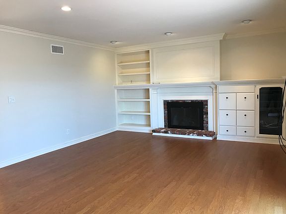 This single story home welcomes you in with double front doors and hardwood flooring in the living room, dining room and kitchen. Upgrades include a fabulous custom kitchen with quartz kitchen counters, tile back splash, custom sink, gas cook-top, and soft close drawers. With crown molding and floorboards throughout, the home also features custom built-ins surrounding the fireplace in the living room. The primary bath has been recently remodeled and includes marble floors and counter tops. The second bath was also recently remodeled.