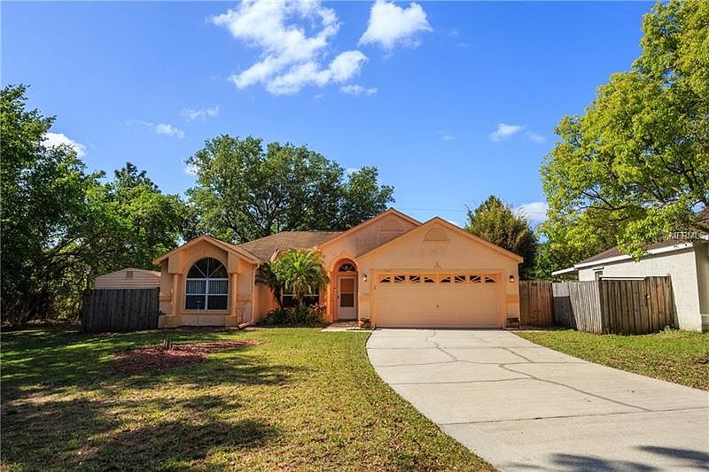Honey Stop the car! Located on a cul-de-sac with conservation land surrounding the rear of the home. You just might have a deer sighting during the early morning or late night hours from the 13X27 screened enclosed patio. Improvements included: Granite counters and refinished cabinets in Kitchen and baths, New light fixtures, mirrors, medicine cabinets, sinks, toilets, blinds and fans throughout, laminate in 3rd bedroom & hallway, new carpet and upgraded padding in master and 2nd bedroom, new porcelain tile in foyer, kitchen and baths, custom paint interior and exterior, new tile and outdoor carpet on patio, new garage door and coach lighting, new AC in 2013. Floor plan offers split bedrooms and open concept. Includes a 10x12 shed to store the outdoor tools and toys. The driveway is long enough to park roughly 8 to 10 cars. This home is rich in character so don't delay to schedule your preview because in our fast pace market it will not last.