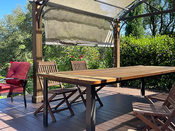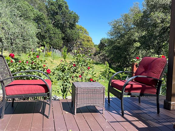 FULLY FURNISHED. No need to drag your furniture. Short drive to Healdsburg 12 minutes through ever changing Dry Creek Valley. A feast by itself. Peaceful and quiet. The advertised home was fully renovated in 2023 with all new floors, paint, appliances (very high end) Viking stove, Subzero refrigerator, NO Carpets in home only hardwood floors and tiles. Large fenced backyard with gourmet outside kitchen, patio and hot tub. Spacious decks for sun bathing and enjoying the outdoors. Fruit and vegetable garden. This property is designed to enjoy wine country living. 2 ac of garden with property. Home is single level. The house has a 500 sqft master bedroom suite, high ceilings with large bathroom and walk in closet. All high end amenities. 2nd bedroom with own bath, All granite tiles, and marble countertops. The upper area is 3000/month which includes the master bedroom suite and 2nd bedroom.