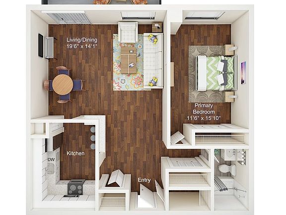 Organic community gardenLarge balconyEnormous balconiesSpacious apartmentsUpdated bathroomHardwood floorsOpen floor plans