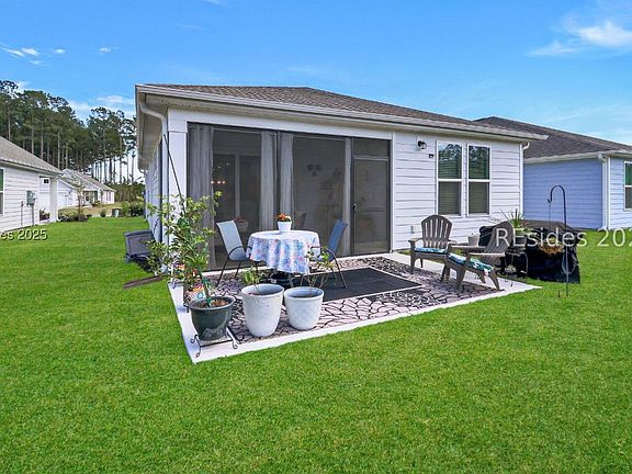 Welcome to this stunning 3-bedroom, 2-bath Hallmark model perfectly situated on a beautifully landscaped lot in the heart of Sun City Hilton Head. Barely lived in and meticulously maintained, this home feels brand new and offers peace of mind with the builder's warranty still in place. Step inside to a bright, open-concept living space featuring a gourmet kitchen with upgraded cabinetry, quartz countertops, stainless steel appliances, and an expansive island ideal for entertaining. The spacious great room flows seamlessly to the screened lanai and private backyard, creating the perfect setting for relaxing or hosting guests. Additional highlights include a serene owners suite with a spa-inspired bath, two guest bedrooms offering flexibility for visitors or a home office, and a large laundry room with extra storage. The homes thoughtful design and pristine condition make it truly move-in ready. Enjoy all that Sun City has to offer world-class amenities, resort-style pools, golf, and endless clubs and activities all just minutes from shopping, dining, and the beaches of Bluffton and Hilton Head Island.